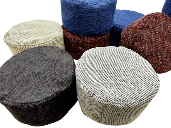 Kulatý taburet o průměru 50 cm a výšce 17 cm, má snímatelný potah z kvalitní pevné látky. Uvnitř ukrývá polštář plný pohankových slupek. Taburet poslouží jako praktická podložka i sedák, děti jej využijí ke svým hrám.